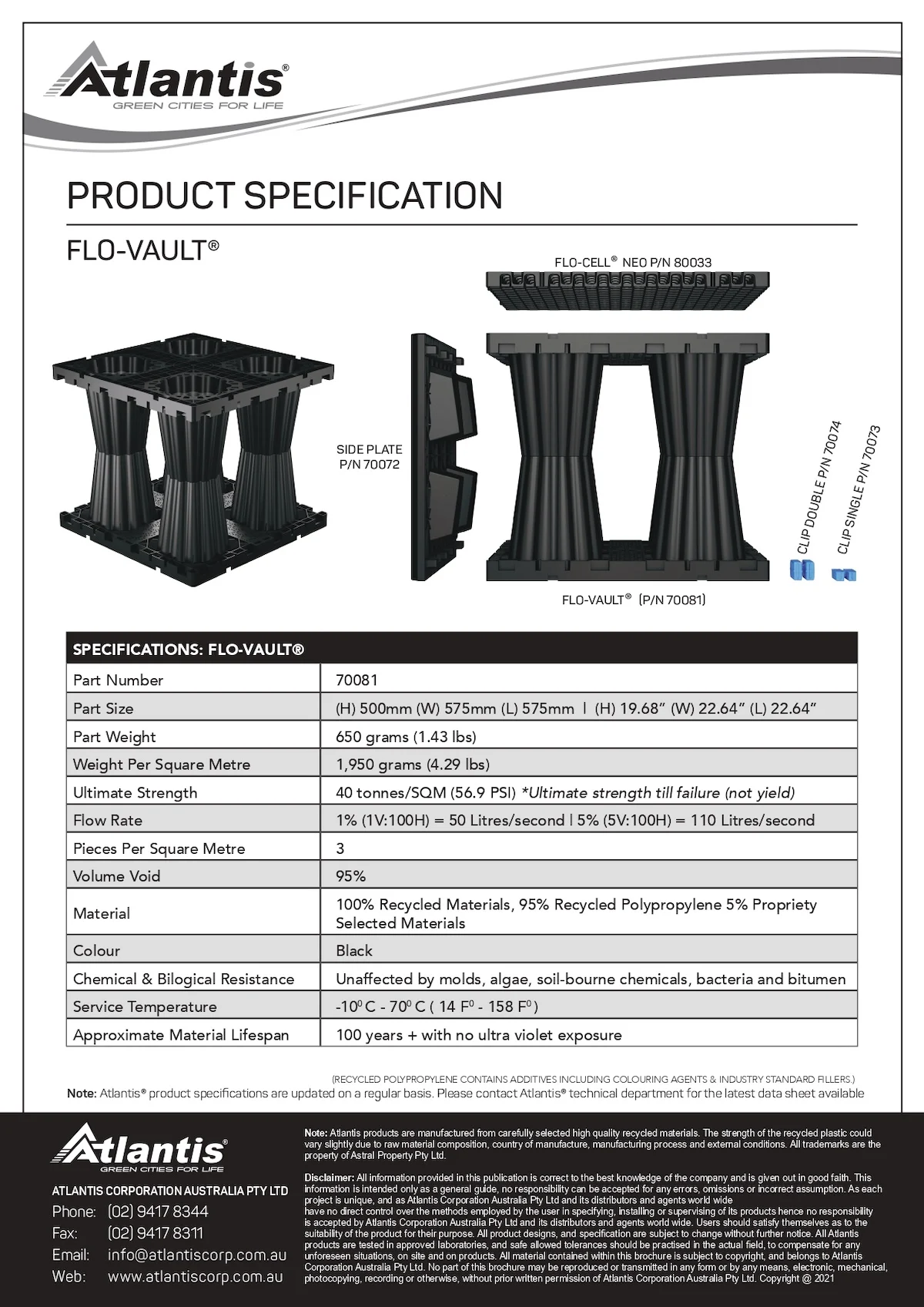 The Atlantis Flo-Vault® is an innovative and lightweight modular tank system designed for underground water storage and various other applications. This advanced system provides an efficient and flexible solution for constructing tanks of any volume, tailored to specific site conditions. Moreover, its modular design ensures easy assembly and adaptability, making it ideal for a wide range of water management needs.