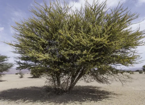 Mangium suitable for Saudi landscapes; low water use once established, best in full sun. Typical mature size 6-12 m tall.